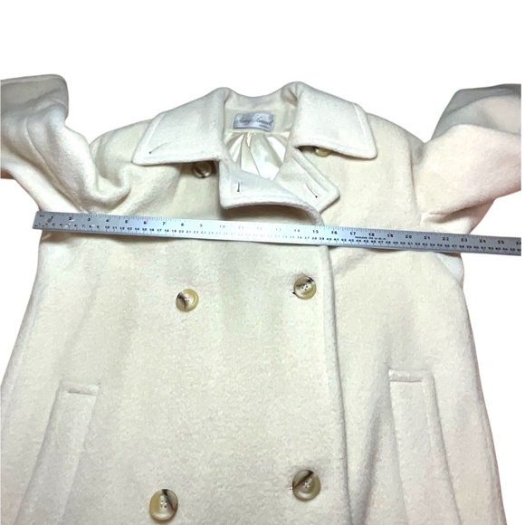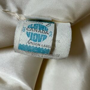 MADE IN CANADA under the Union Label. In very good condition for its age. Side pockets. Double breasted; tortoiseshell buttons. Shoulder padding. Some very faint marks near the hemline from shop dirt but too faint to photograph. I have carefully brushed them with a soft brush I use for this purpose. 100% Cotton Lining is absolutely clean. Colour is an ivory / cream. Chamois leather insert under the lining at the top of the back. I am old enough to remember manufacturers adding this feature as an extra layer of warmth. No matter where you are in Canada this coat will keep you warm and you’ll be looking very stylish. Length is 47” from top of shoulder. Don’t hesitate to ask questions if you have them. I will do my best to answer promptly. Due to the weight of this garment it will not qualify for bundles of more than 2 items. I have marked this as a size Large but I am an XL on top and this coat fits me perfectly. I’m hesitant to sell but I just own too many coats. 😊