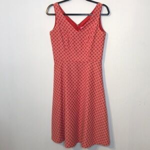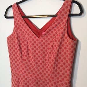 ISAAC Mizrahi double vneck jacquard polka dot coral pink flare cocktail dress