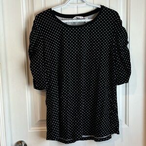 ISAAC Mizrahi polka dot Live Puff Sleeve Elbow Sleeve Black & White Top XS