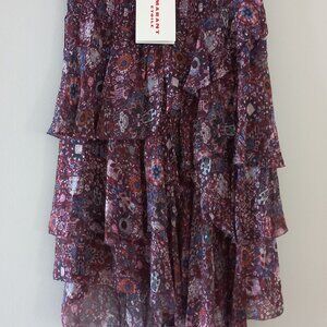 ISABEL MARANT ETOILE NWT Brigitte Plum tiered moto boho asymetrical skirt