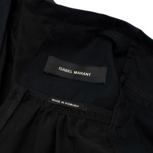 Pre-owned Isabel Marant Lief silk dress in black featuring v-neckline, flared cap sleeves, attached belt at waist, wrap tie closure, asymmetrical bottom skirt and tonal stitching throughout.