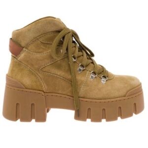 GORGEOUS Mealie suede boots from ISABEL MARANT featuring taupe, calf leather, calf suede, round toe, front lace-up fastening, ankle-length, chunky rubber sole and mid heel.
