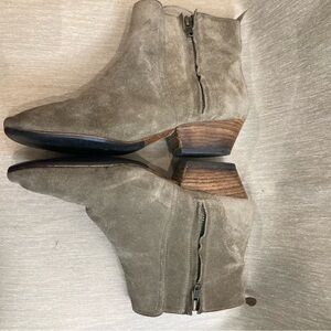 ISABEL MARANT Sz 39 Suede Zipper Riunded Toe Cap Stacked Heel Ankle Booties. Super cute. Light olive green. Super cute and comfortable. Resoled.