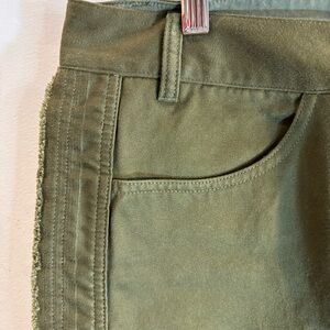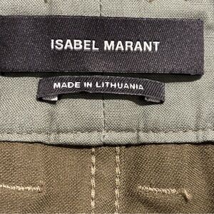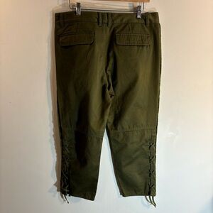 ISABEL MARANT Sz 42 Jessie High Rise Pants 100% Cotton Cropped Lace At Hem Olive Green. Gorgeous and trendy. Style up or down.