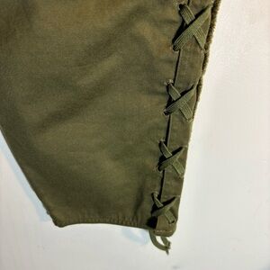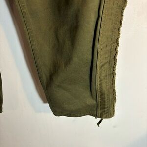 ISABEL MARANT Sz 42 Jessie High Rise Pants 100% Cotton Cropped Lace At Hem Olive Green. Gorgeous and trendy. Style up or down.