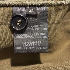 ISABEL MARANT Sz 42 Jessie Pants 100% Cotton Cropped Lace At Hem Olive Green