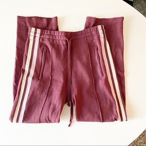 Dobbs track pants are constructed of burgundy, ecru, and lilac striped knit. Showcasing the French diffusion line's sportier side, this pair is finished with a channel-stitched drawstring waist. Front and back zip pockets Contrast side stripe. Drawstring waist. Seamed legs. 66% viscose, 20% polyester, 12% polyamide, 2% elastane.