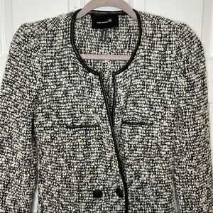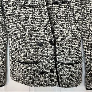ISABEL Marant Black & White Tweed with Leather Trim Wool Blend Button Jacket 0