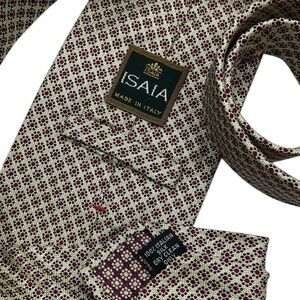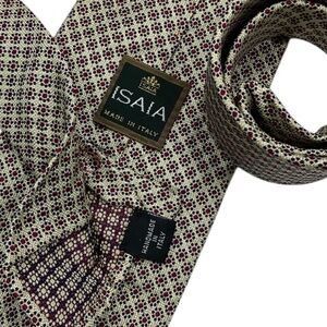ISAIA UNTIPPED RARE Beige Floral Silk LUXURY Tie HANDMADE ITALY