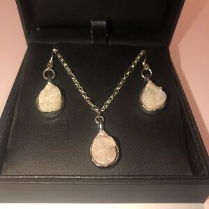 Isara White Druzy Necklace & Earrings Set Silver Tone Costume Jewelry