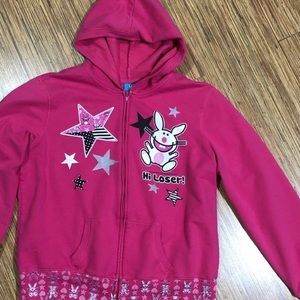 the pink gir jacket they posted is mine. they initially agreed to trade their marcy the monkey skelanimals bag, but sent me an old plush instead then spread lies about how i was the one to scam them.