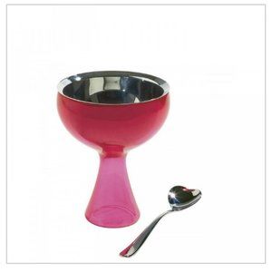BIG LOVE - FOOTED STAINLESS STEEL ICE CREAM BOWL WITH SPOON - FUSCHIA