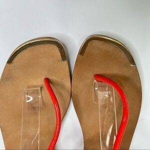 Isolá Coral Peach Orange Snakeskin Gold Tipped T-Strap Cleopatra Sandals Shoes
