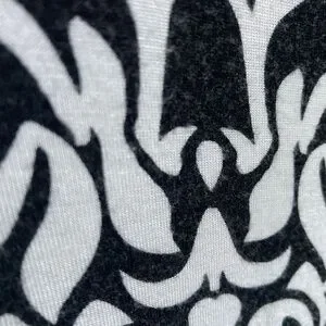 Soft to the touch, has elastic along. bottom hem to make it look like a bubble hem- size Large
