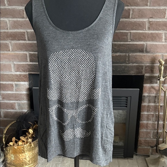 Chic charcoal tank with rhinestone design. Ideal for casual wear.