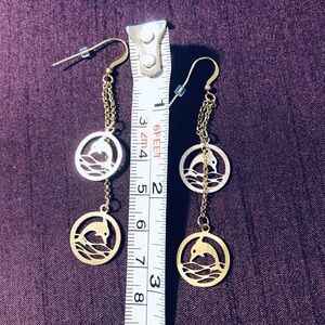 ISara Gold Dangly Double Dolphin Earrings GIFT Boxed