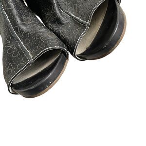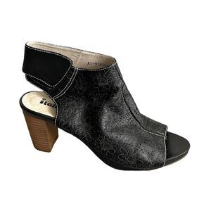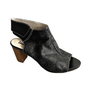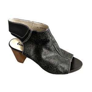 ITALMODA Leather Sling Back Open Toe Sandals Shoes Heel Floral Design Black 41