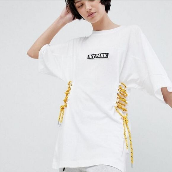 IVY PARK Logo Football Shirt White, Yellow Laced Oversized T Shirt US XS…