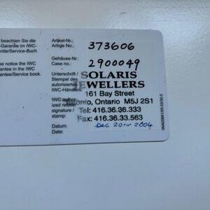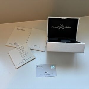Original owner. White dial. Stainless steel casing. Purchased in 2004. Comes with 2 genuine IWC watch straps (one black leather and the other stainless steel) -each with its own folding clasp. Very light wear. Beautiful watch.