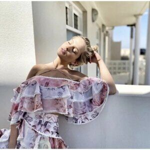 Ixiah Be with Me Cami Barbie Pastel Pink And Blue Ruffles Floral Flowy Top Size US 6