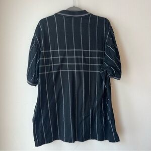 IZOD Double Mercerized Polo Shirt Black Gray Stripe | Y2K Prep Aesthetic L