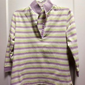 IZOD FLEX Women's Cotton Stretch Collared 3/4 Sleeves V-Neck Pullover Size S/P