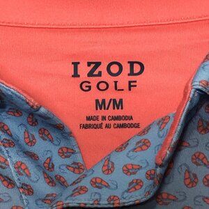 IZOD Golf Shirt Men's Sz M Short Sleeve Polo Stretch Tropical Ocean Blue Shrimp