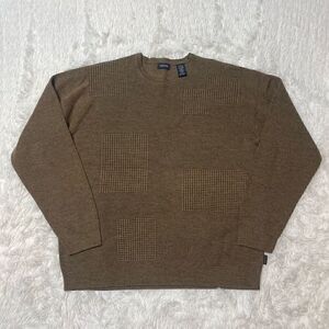 IZOD Sweater Mens Large Brown Pullover Merino Wool Blend Stretchy Crew Neck