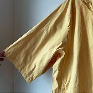 Bright and functional, this men’s IZOD XFG half-zip golf jacket in size Large is perfect for breezy days on the course or casual outings. The sunshine yellow color adds a fresh pop to your activewear. Features include a mesh lining for breathability, short sleeves for mobility, zippered side pockets, and an elastic hem for a secure fit. Lightweight yet protective, ideal for layering over a polo shirt. Made of polyester and nylon for water resistance and durability. Great condition with no stains or flaws.