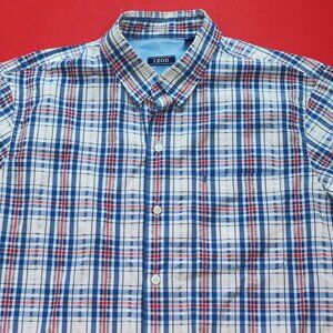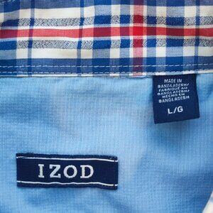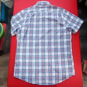 IZOD button down short sleeve shirt white blue red plaid men's size L