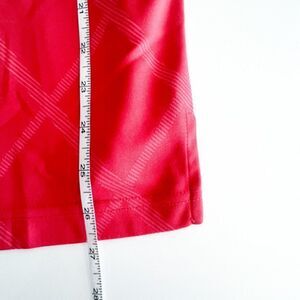 IZOD Golf Polo Shirt Short Sleeved 1/4 Zip Red Men's S. Diamond Pattern. Missing Fabric Tag. Very good used condition-small snag on front of shirt-see phto. Please see photos for approximate measurements.