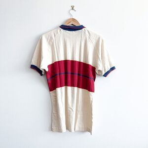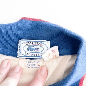 IZOD Lacoste Mens Rib Knit Polo Shirt Short Sleeve Colourblock Cream Red Size Large