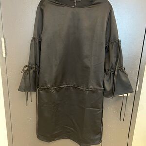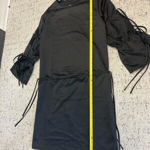 IZZUE NWT size 4-6 (34 European) multi styled lux dress- this can be worn uncinched /cinched can be whimsigoth or formal- dressed more down- IZZUE is a very underrated lux brand in Canada- this is a super incredible dress- please see measurements as I am a 6 and it fits me great- but not baggy- I think it would be a bigger size 4 smaller size 6… this is a really beautiful abs fun dress- classic and quite luxury or goth… versatile