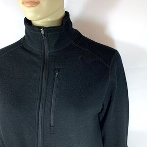 Ibex Full Zip Hi Collar 100% Merino N Zealand Wool Tight Knit Cardigan Blk Sz S
