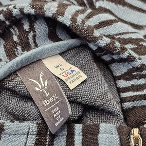 Ibex Womens Juliet Zip Up Tunic Sweater Size Small Blue Black Wool Pockets