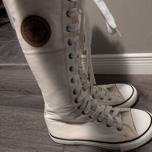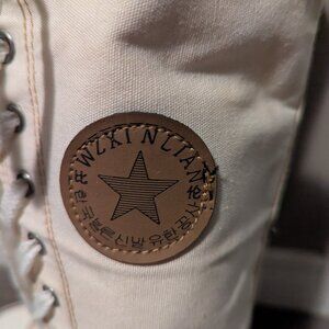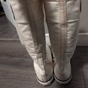 Size 6.5. Sole length: 25.5 cm x 8.5 cm wide. Height: 35.5 cm. Made of durable ivory canvas. Side zip + front laces. Rubber sole. Logo on the upper. Rare model. Lightweight. Stylish and bold.