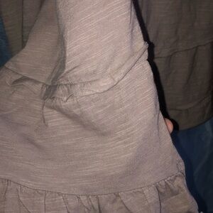 Stylish and versatile grey/ brown depending on light- cardigan for women. Perfect for layering and adding a touch of elegance to any outfit. Button free, the roof fled bottom makes for a nice finish. Being cotton, it makes for a light summer fall sweater or for the office or days when there is a chill in the air- new or like new.