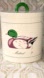 Great previously owned vintage condition. No cracks. Has some scratches minor wear. Green pin stripe design. Measures about 8” high to top of handle and just under 6 1/2” in diameter. Please view photos.