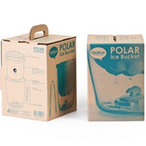 Web description: The Polar Ice Bucket gives you a stylish way to serve ice cubes. Melted ice drips into the bottom so that the remaining ice melts slower. Enjoy your chilled drink while being environmentally conscious! The design is a gentle reminder about the importance of environmental sustainability. Product and packaging are made from 100% recycled materials.
