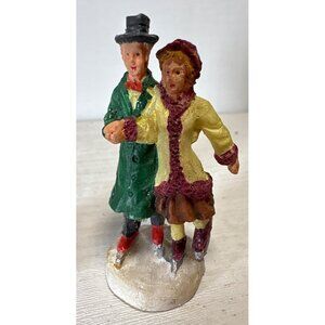 Ice Skating Couple Figurines Christmas Village Set Of 2 Vintage Hand Painted