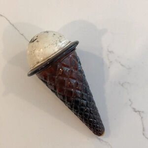 Ice cream cone salt and pepper shakers vintage Amber glass with nesting station