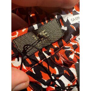 Iceberg SILK geometric Print Red BlacK White maxi skirt w train 40/M