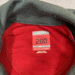 Icebreaker 260 Bodyfit Mens Size Medium Red Gray Merino Wool 1/4 Zip Pullover