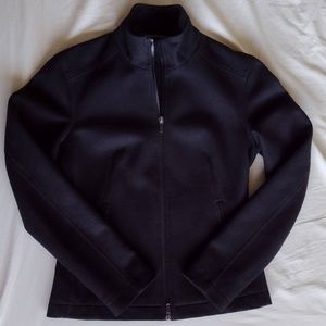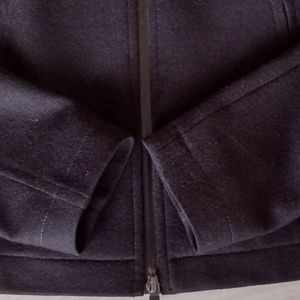 A lightweight jacket for spring/fall weather. Outer face is smooth NZ merino wool, lined with a printed fabric. Tailored fit with room for light layers underneath. It's pre-owned and in lightly worn condition with no flaws to note. The inner icebreaker tag which is suede or suede-like material is showing some fuzzing on the surface. I removed a small Icebreaker tab, as it rubbed against my wrist when walking.