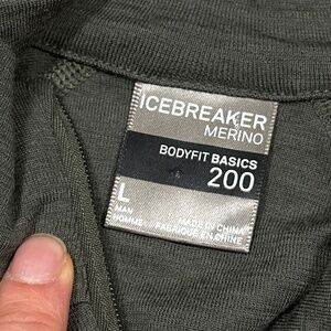 Icebreaker Merino Wool Bodyfit 200 Green 1/4 Zip Base Layer L/S Shirt Mens L