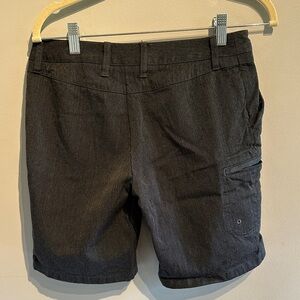 Chic and versatile bermudas by Icebreaker. Ideal for hiking or casual wear. Low waist with two front pockets and one side zippered pocket. Missing front inner button but comes with an extra if you are into sewing it on (took pics)