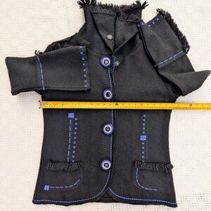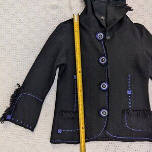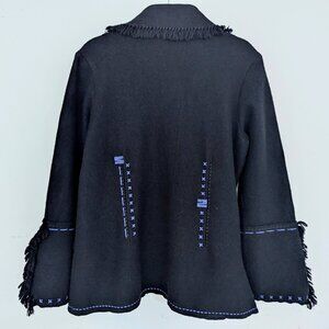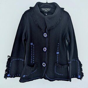 Icelandic Design Black Cardigan Sweater Embroidered 100% Wool Size M