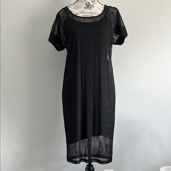 Ichi Black Sheer Pleated Layered Dress With Removable Slip Dress