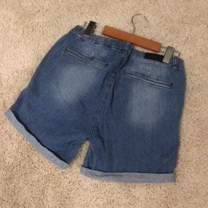 Very good preowned condition, stretchy, Raven Shadow denim jean shorts by Ichi. These shorts are super comfortable, made with stretchy and accommodating fabric. Not too long and not too short, they're great for so many occasions, from beach walks to yardwork. The faded areas are part of the look and were sold that way.