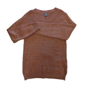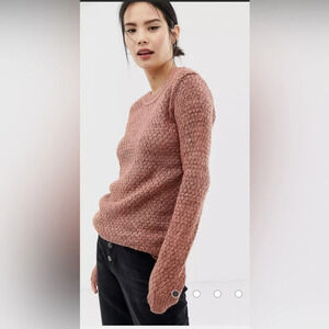 Dusty rose in color, this long sleeve knit sweater has a round neck and ribbed cuffs. Just in time for cool weather!